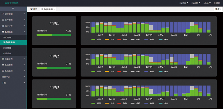 实时掌握总体性能,统计各种时间浪费在哪里,来实现改进,可随时了解、汇总、交流现有设备的运行情况、效率、优势。